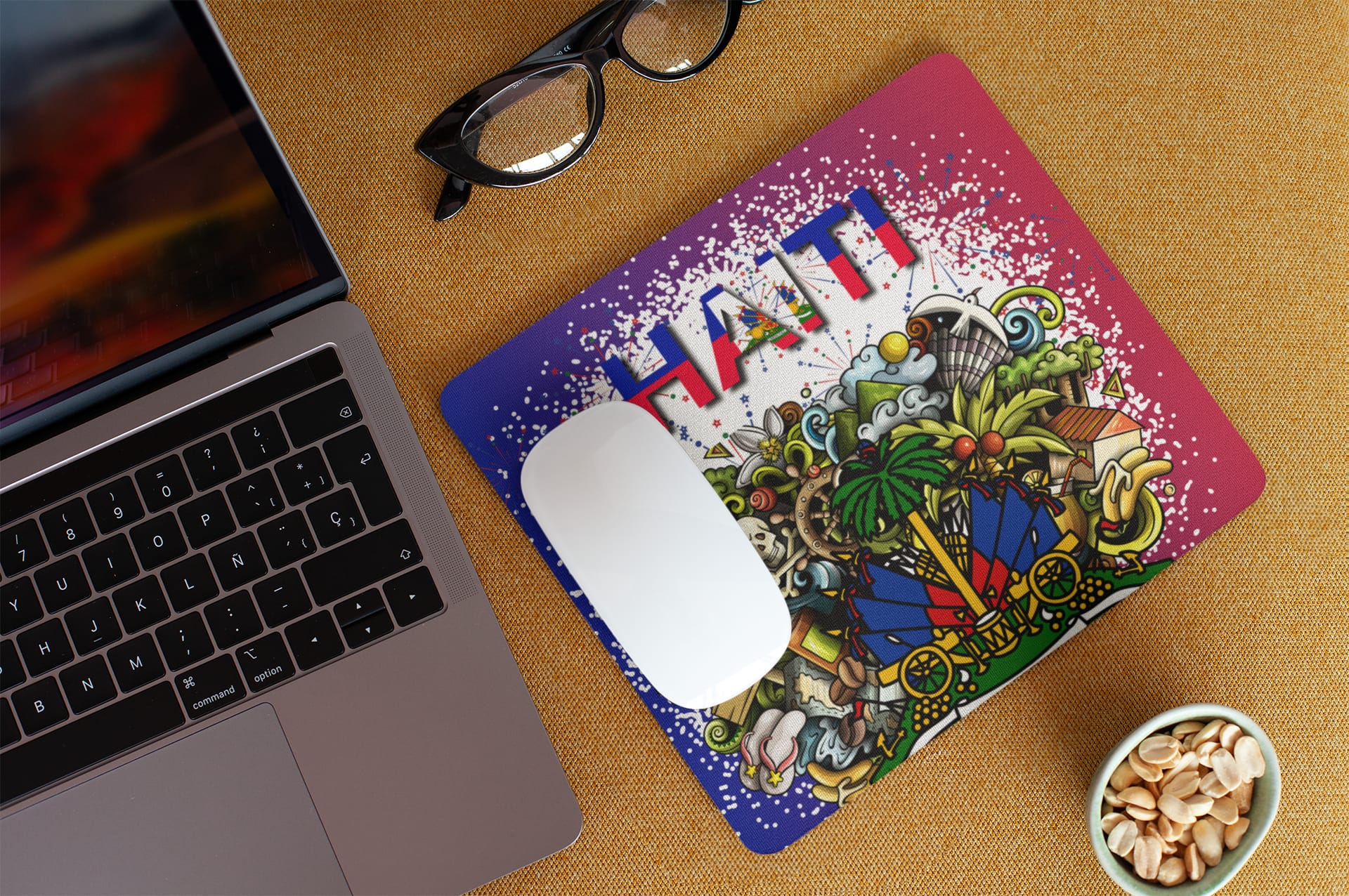 Bring Haitian pride to your desk with this soft neoprene mouse pad featuring a bold Haitian flag design. Perfect for laptop and desktop use, it offers a smooth surface for accurate optical mouse control—great for work, school, or gaming. Size: 8.5" x 7" and made for everyday comfort and style while representing Haiti